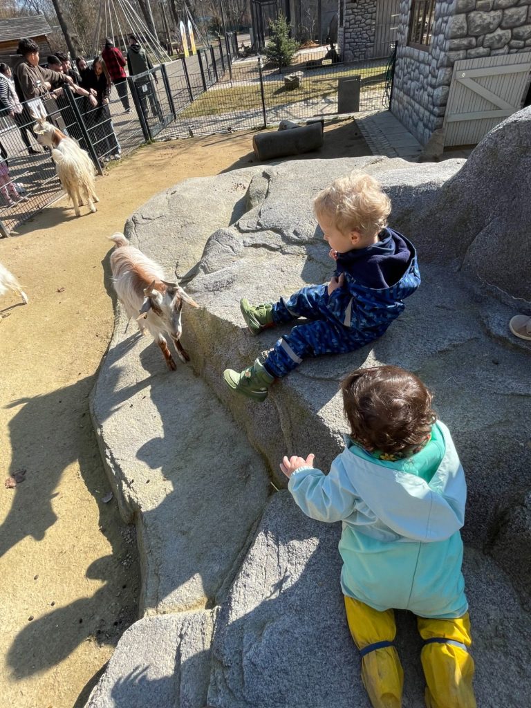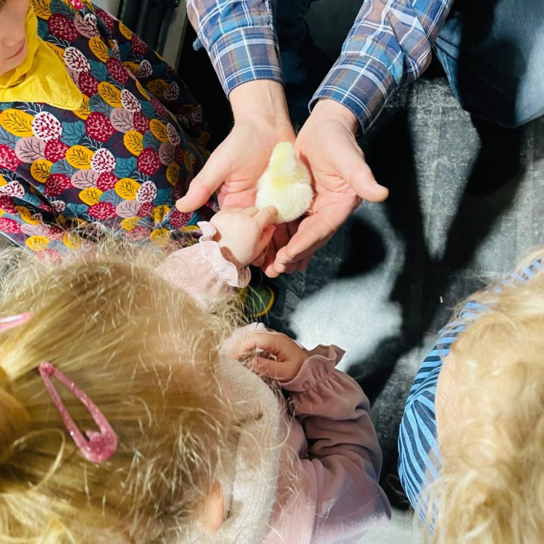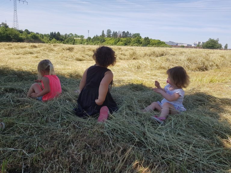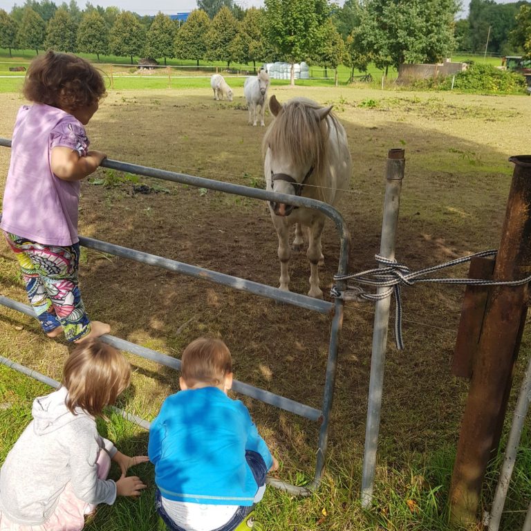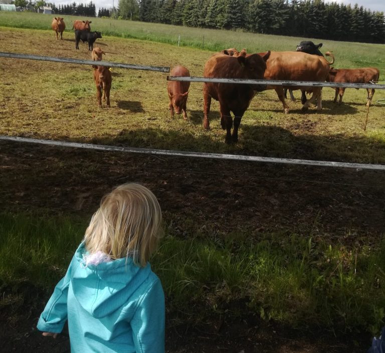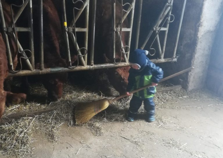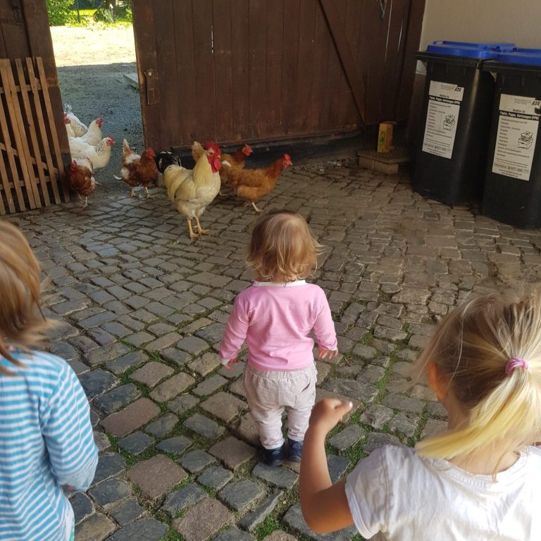 Zusammen besuchen wir die Höfe im Dorf, dürfen die Tiere streicheln, füttern und manchmal sogar bei der Arbeit helfen