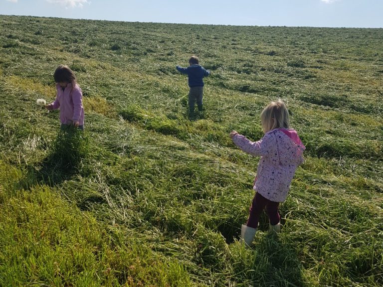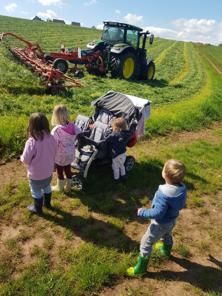 Auf dem Feld verfolgen wir interessiert die Arbeit der Maschinen, beobachten die Tiere und genießen die Freiheit...