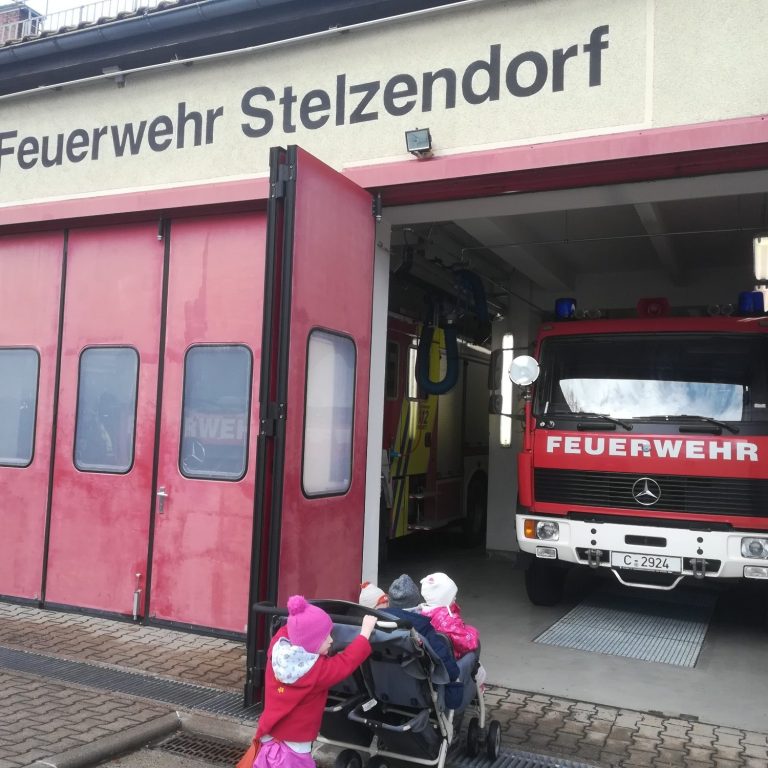 Gern besuchen wir die Freiwillige Feuerwehr in Stelzendorf und dürfen zusammen mit den Kameraden der Feuerwehr sogar mal in die tollen Feuerwehrautos einsteigen.