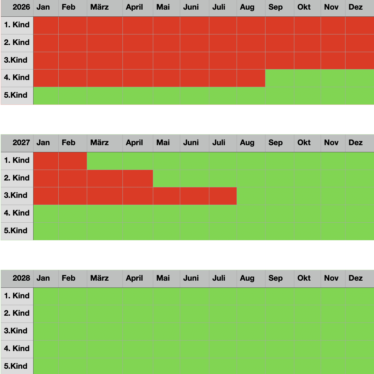 Der Belegplan bietet Euch eine grobe Übersicht über verfügbare Plätze. Fragt aber gern einfach nach, ob ein Platz in Eurer gewünschten Zeit verfügbar ist ...