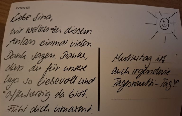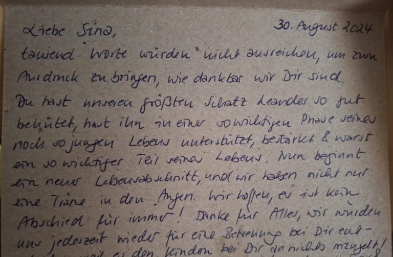 Zudem lege ich auch sehr viel Wert auf eine vertrauensvolle Zusammenarbeit mit den Eltern, durch transparente Kommunikation, regelmäßigen Austausch und gemeinsame Rituale.